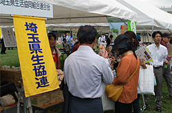 埼玉県生協連は、埼玉県生協連、コープみらいが締結している埼玉県との「災害時における県民生活の安定を図るための基本協定」(1996年締結)にもとづいて参加し、今年で16回目となりました。防災フェア会場で生協の災害活動を広報したほか、コープみらいによる応急生活物資配布訓練、医療生協さいたまによる血圧測定をおこないました。訓練会場では、コープみらい、パルシステム埼玉、生活クラブの車両が、埼玉県からの要請に基づき支援物資を届ける緊急物資輸送訓練に参加しました。また、事前に、MCA無線等を使用し、緊急支援物資の調達訓練を行って今回の輸送訓練に参加しました。
