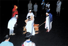 夜のキャンプファイヤーは雨の中で始めましたが、火の神や子どもたちの思いが通じ雨も上がりました。火の神様からの火が点火され、勢いよく燃え上がる焚火をみんなで囲み、ボーイスカウト埼玉県連盟の皆さんの指導で約1時間、ジェンカ、ジンギスカン等の音楽に合わせて踊り、楽しく素晴らしいキャンプファイヤーになりました。