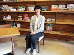 | ▲引地恵(ひきちめぐみ)さん。2016年、「ちょっとお洒落して集える場がほしい」との要望に応え中町カフェーをオープンしました。様々な商品を手に取って見ることもできます。 | ▲巾着袋は地元の女性たちが少し訛って「ふぐろ」と呼んでいたことから「FUGURO」と名付けられました。 (写真提供:(株)WATALIS) |