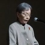 記念講演では、俳優の斉藤とも子さんに、「今 わたしが伝えたいこと」と題して講演いただきました。38歳の時に出演された舞台をきっかけに出会った被爆者との交流の中で、世界がどんどん広がり、今までずっと支えられてきたと話されました。昭和22年に文部省が中学一年生の教科書として発行した「あたらしい憲法のはなし」を引用し、前文に書かれている「民主主義」「国際平和主義」「主権在民主義」が大切な国の考え方であるとされていること、「戦争の放棄」について書かれていることを引用されました。「福島原発ひろしま訴訟」やこども甲状腺がんになった方の意見陳述書などを朗読されながら、被災者の思いを語られました。実際に足を運んで、声を聞いて本当の事実を知り、反対の意見も聞き、そして自分で判断している、足元から事実を見つめ、行動する斉藤さんの姿勢に、共感の声が多く寄せられました。