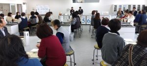 開会にあたり、埼玉県生協連会長理事 吉川尚彦とJA埼玉県女性組織協議会副会長の𠮷田圭子さんからあいさついただきました。コープデリ商品検査センターの1階検査室や2階コミュニケーションスペースの展示などを自由見学しました。
